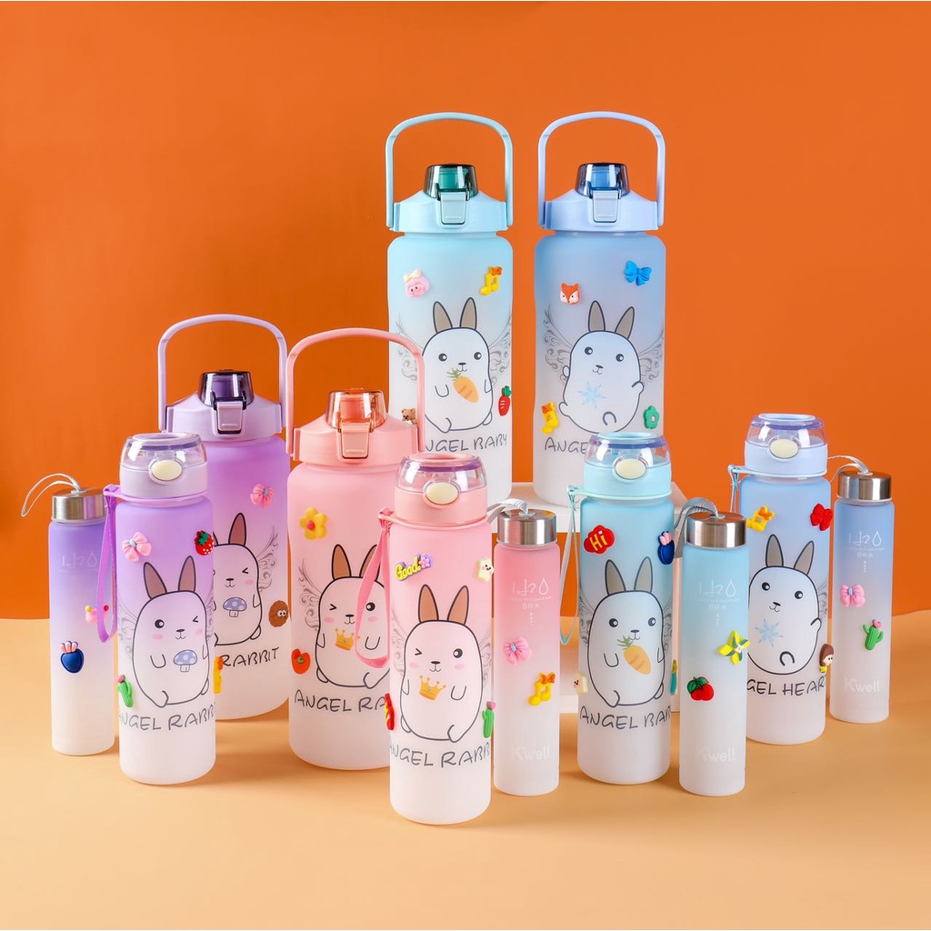 3 IN 1(2L+1L+500ml) Frosted Angel Rabbit Water Bottle Tumbler Gym